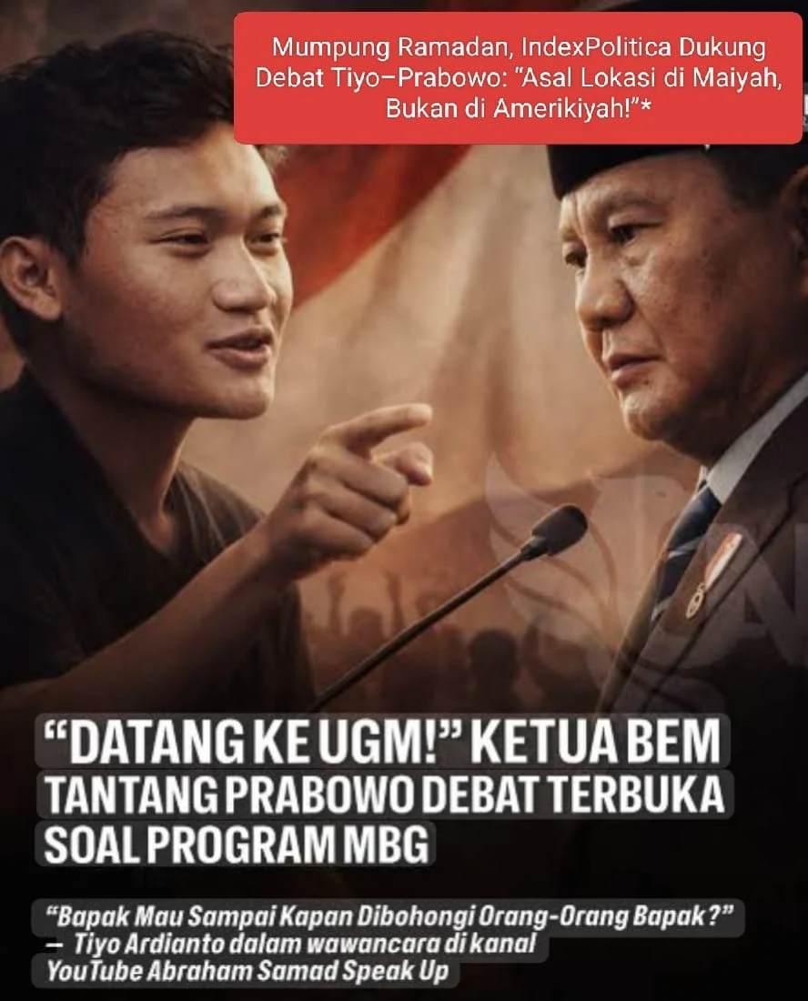 SURAMADUPOS JAKARTA – Direktur Eksekutif IndexPolitica, Alip Purnomo, secara terbuka mendukung terselenggaranya debat antara Ketua BEM Universitas Gadjah Mada (UGM), Tiyo Ardianto dengan Presiden Prabowo Subianto terkait polemik program Makan Bergizi Gratis (MBG).
